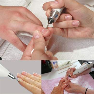 Специальной пилкой-шлифовщиком проходятся по ногтевой пластине. Запечатывают обрезанные края кожи.
