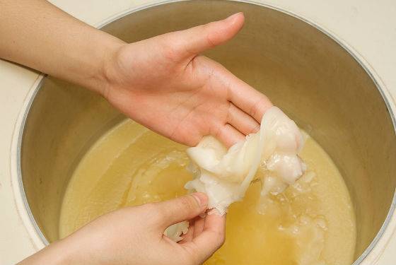 - Пред тем как начинать окунание следует проверить температуру парафина, для чего на тыльную сторону ладони капается 1 капелька, и если он не слишком горячий, то можно производить окунание в несколько этапов;