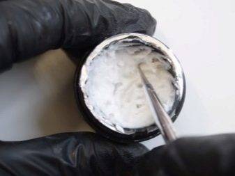 - Кисточку окуните в мономер и самый ее кончик опустите в баночку с порошком.