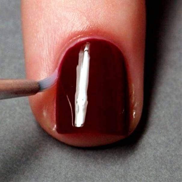 Шаг 4: Повторить это движение с другой стороны ногтя. Если в процессе закончился лак на кисточке, перевернуть ее и продолжить.