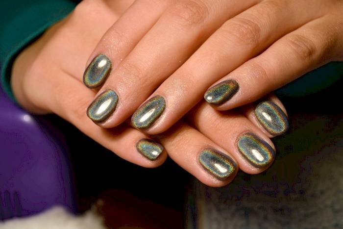 Маникюр с зеркальной втиркой