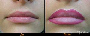 - хороший эстетический результат – губы приобретают насыщенный оттенок, имитирующий помаду, или близкий к натуральному цвету.