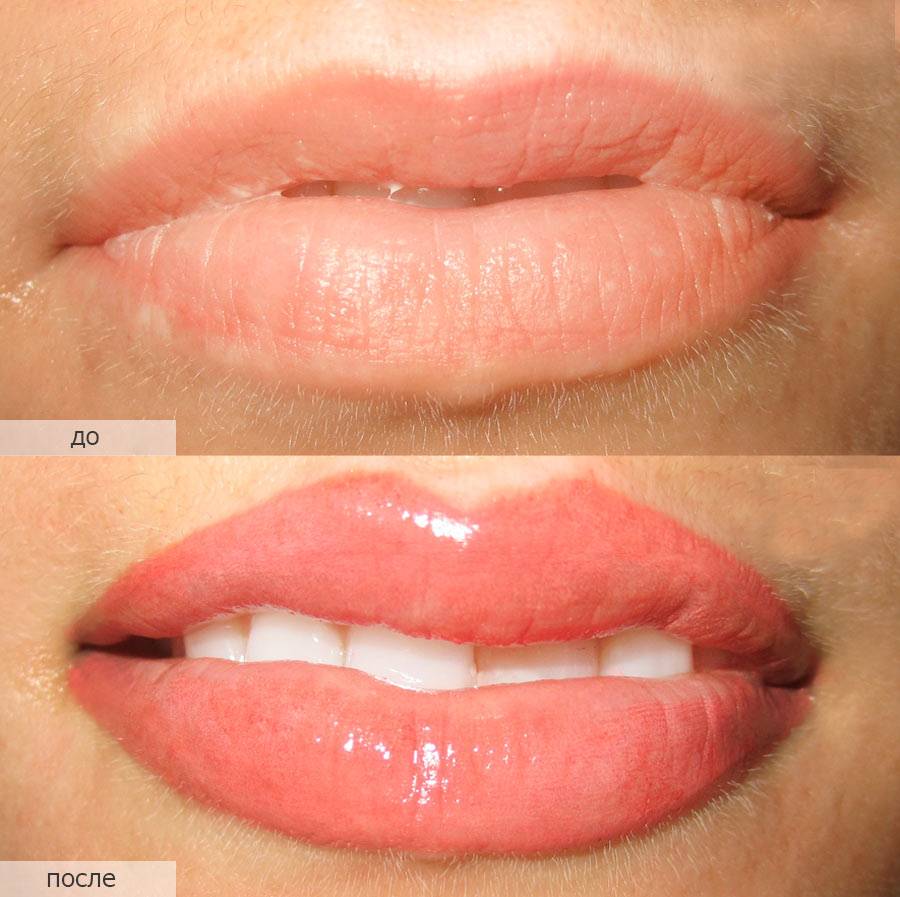 - хороший эстетический результат – губы приобретают насыщенный оттенок, имитирующий помаду, или близкий к натуральному цвету.