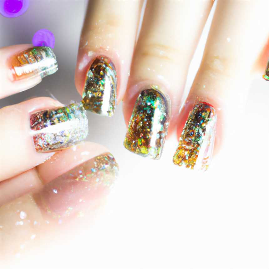 - Фольга, слюда или специальные полиэтиленовые кусочки, имеющие голографический эффект для создания маникюра «Битое стекло».
