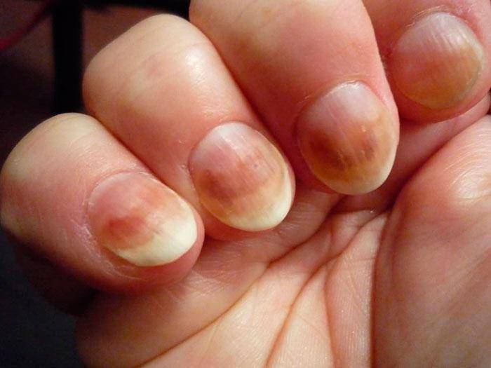 После снятия такого лака можно увидеть неприятную картину с потемневшим, а иногда, и пожелтевшим ногтем. Причина тому грибок Дерматофит.