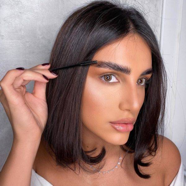 - Правильно подобранная форма бровей поможет визуально “уравнять” черты лица.