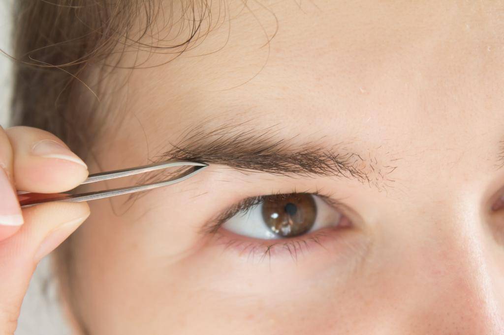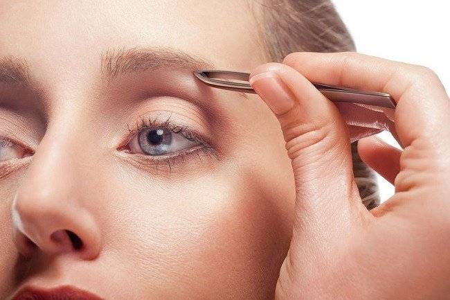 - Пинцетом удаляем волоски, располагающиеся за границами бровок.
