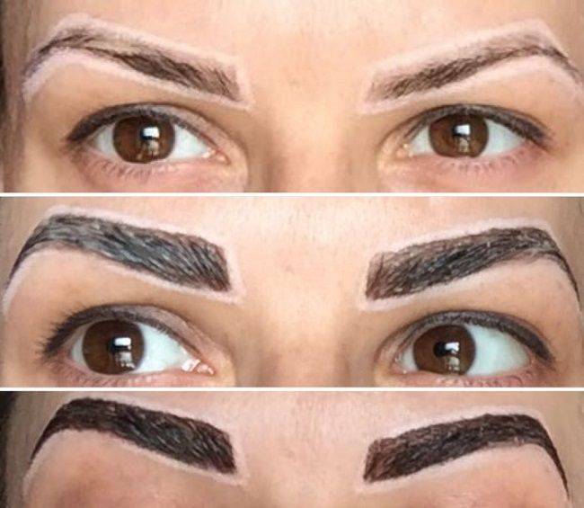 - напыление, растушевка: косметолог словно растушевывает пигмент, за счет чего достигается эффект, напоминающий окрашивание бровей тенями;