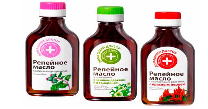 Репейное масло сейчас есть в продаже со всякими различными добавками. Например широко распространено репейное масло с экстрактом красного перца, для стимуляции нервных окончаний и улучшения роста волос. При нанесении на кожу головы оно приятно согреет кожу, активизирует клеточное кровообращение. При сильном жжении рекомендуется развести состав миндальным, подсолнечным или оливковым маслом.