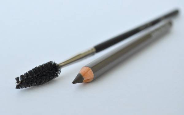 - Ограниченное число продуктов. Чтобы выполнить хороший макияж бровей, нельзя ограничиваться одним средством и небольшим набором инструментов. Кроме карандаша, которым удобно прорисовывать контур, необходимо еще средство для окрашивания волосков и кожи для более стойкого макияжа. Уложить брови в нужном положении тоже будет не лишним. Еще понадобятся щеточки, кисти, пинцет.