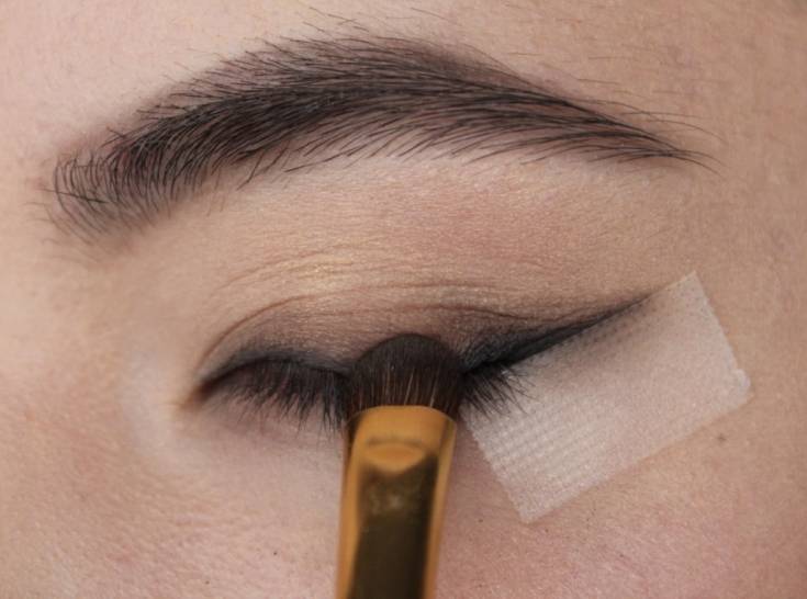 Внешний угол глаза следует заполнять кистью, а потом растушевать, обратите внимание, что линия растушевки не всегда получится красивой, нужно найти свою линию, для этого проанализируйте строение своих глаз и посмотрите в интернете, какая линия растушевки подойдет вашим глазкам.