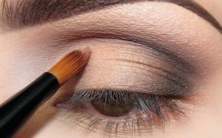- на глубоко посаженные глаза самый тёмный оттенок наносят на складку века и внешние уголки глаз, плавно растушёвывают цвет к линии бровей.