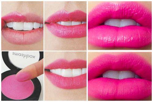 • оригинальный, когда помада вбивается пальчиками в кожу губ.
