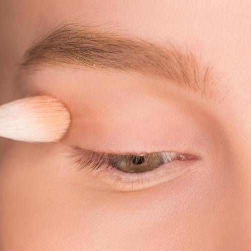 Нанесите на веки праймер для век или тонкий слой тонального крема. Затем растушуйте пушистой кистью из натурального ворса бежевые тени по всей поверхности века.