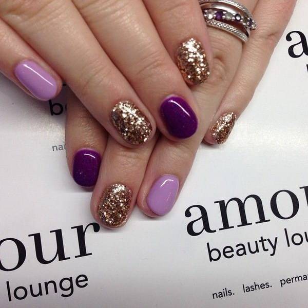 Удивительно красивый дизайн можно сделать с помощью блестящих ромбиков, пайеток, зеркальной фольги. Наносится декор как на прозрачное покрытие, так и на основной фон.