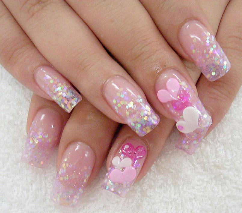 Ногти можно украсить цветами, орнаментами, изображениями мультяшных персонажей. При помощи фольги с наклейками также создаётся кружевной маникюр — нежный, романтичный вариант нейл-арта.
