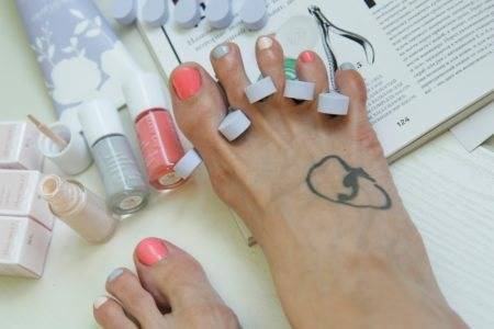 Все эти принципы подходят как для нанесения лака на ногти на руках, так и на ногах. Единственное дополнение в том, что, на ногах необходимо разделить пальчики между собой специальным разделителем. Это делается для того чтобы в процессе покраски они не задевали друг за друга и не смазывали результат.