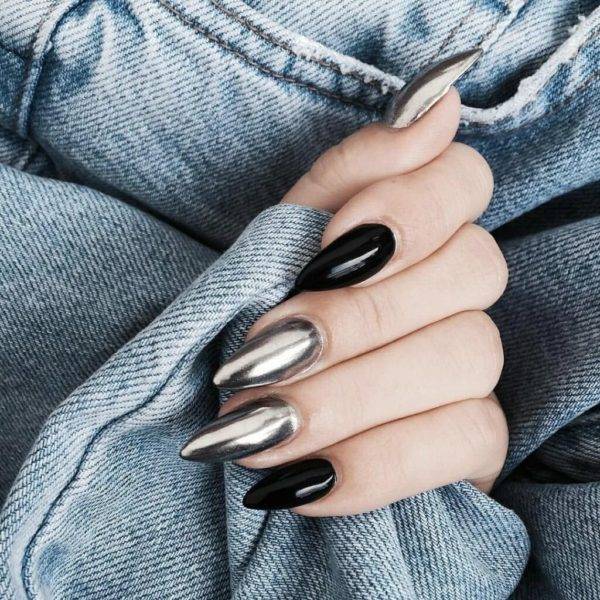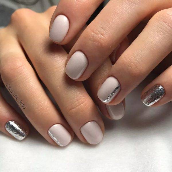 Серебристый цвет на ногтях в последнее время очень модный вариант. Металлическое покрытие делает дизайн одновременно нарядным, но при этом не умиляет его строгости.