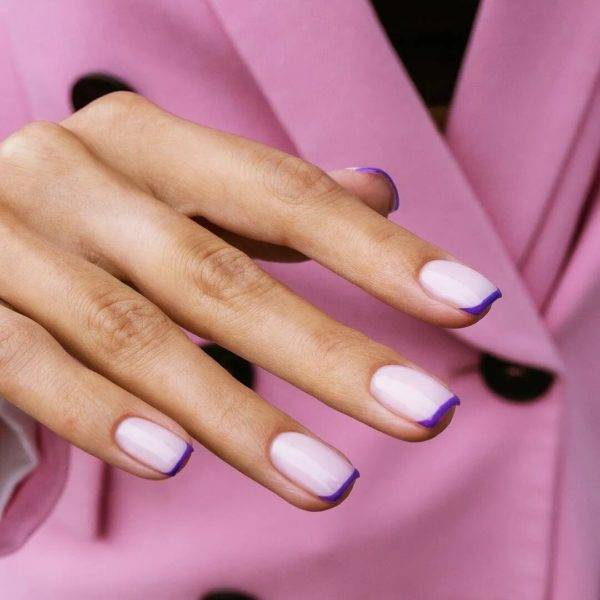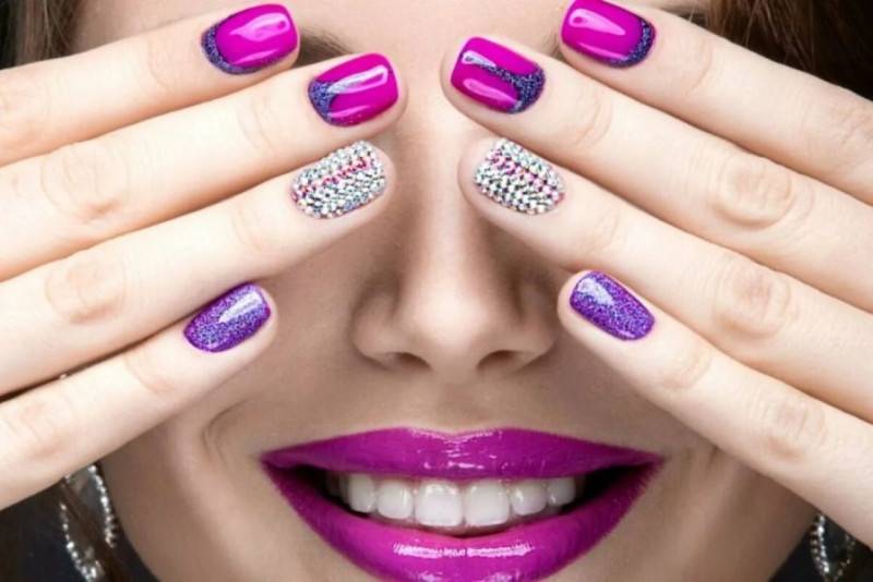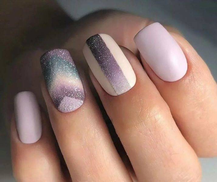 Сиреневый в своем исполнении на короткую длину схож с розовыми тонами. Задача та же, выполнение с различными дизайнами то же, но отличие лишь в том, что это будет не надоедливый розовый, а редкий сиреневый оттенок.