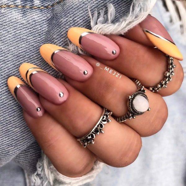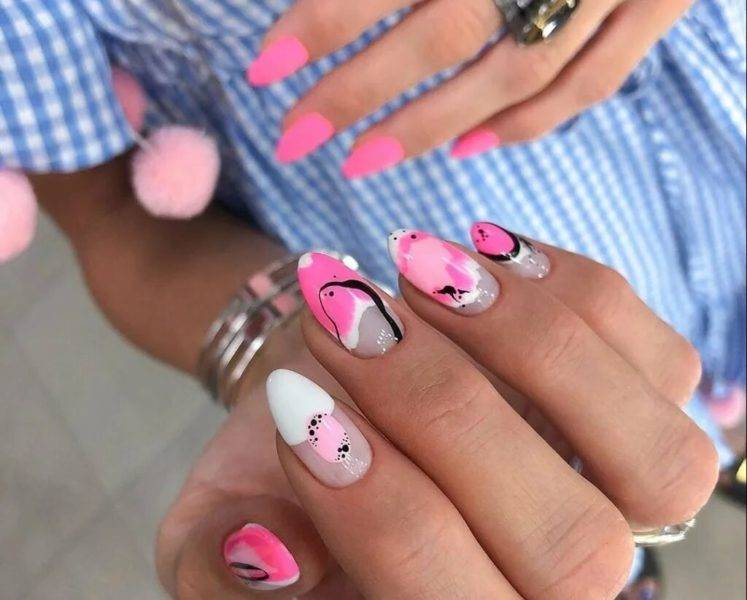 На острые ноготки также можно подобрать различные варианты дизайна ногтей на день рождения. Эта смелая и в то же время актуальная форма ногтей будет прекрасно смотреться в любом исполнении от пастельных до ярких и дерзких тонов.