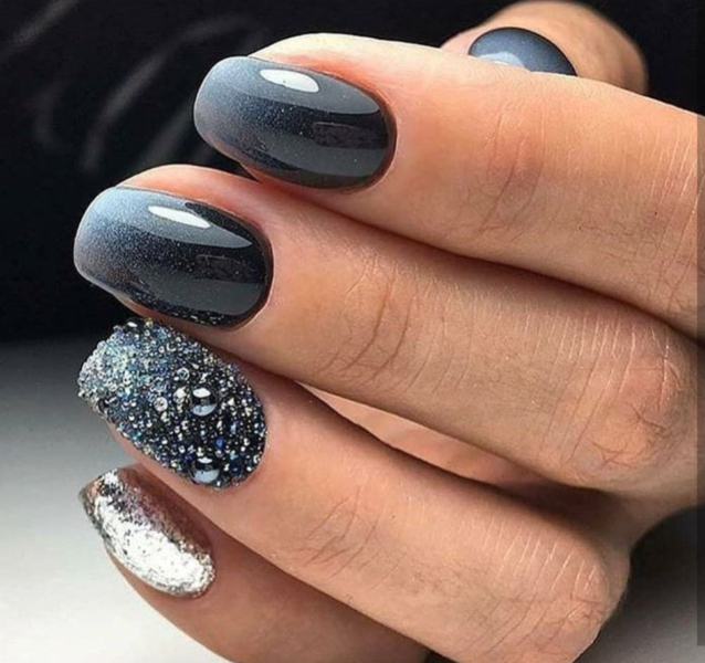 Если вам предстоит вечернее мероприятие, то можно выбрать более яркий и заметный маникюр. Используйте глиттер, камни, объемные декоративные элементы, чтобы создать нарядный и эффектный маникюр.