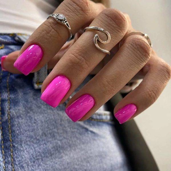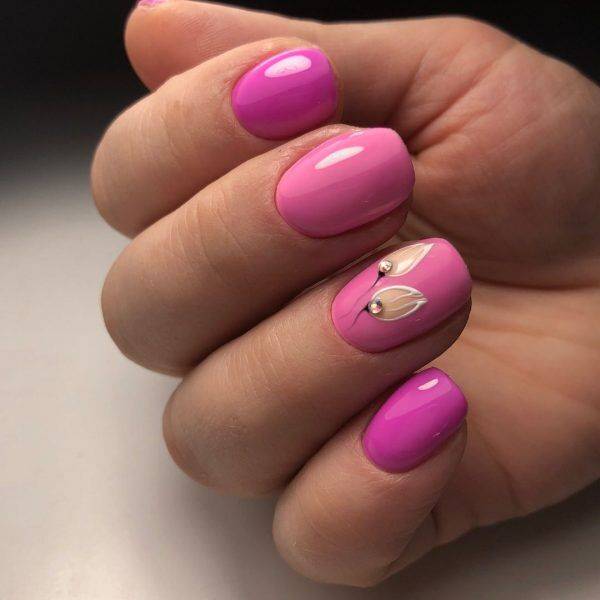 Романтизм такого оттенка трудно переоценить. Когда девушке хочется нежности, легкости и красоты, она начинает выбирать тот самый розовый из всех его оттенков. Нежно-розовый тон на короткую длину ногтевой пластины будет беспроигрышным вариантом.