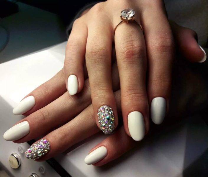 Классическим вариантом светлого маникюра всегда остается белый цвет. Пусть он и не практичный, зато смотрится действительно эффектно.