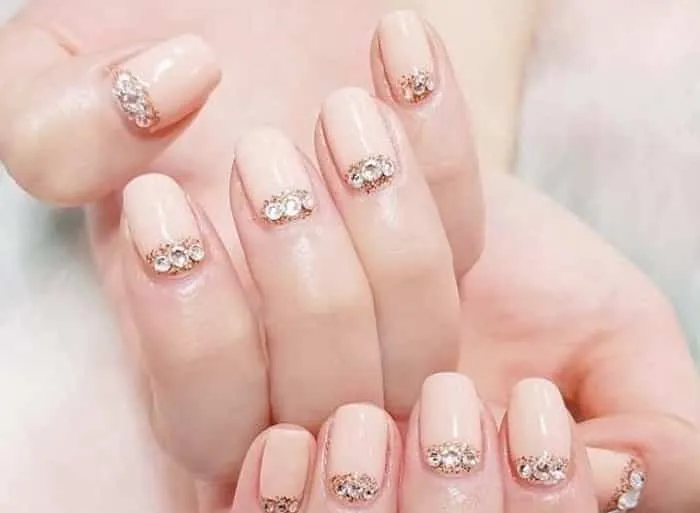 Нюдовый маникюр можно адаптировать для праздничного дизайна: