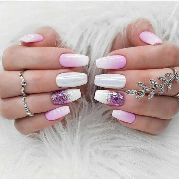 Дизайн в сиреневых тонах — смелый и небанальный маникюр на свадьбу. Оттенки лаванды, сирени и аметиста чудесно смотрятся и на коротких, и на длинных ногтях. Являясь результатом смешения красного и синего цветов, сиреневый — символ баланса, вдохновения.
