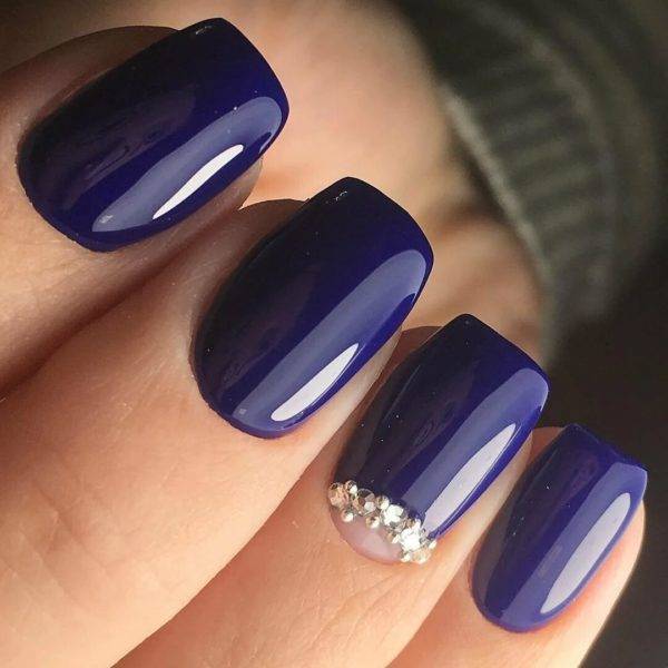 - Стразы могут стать ключевым элементом композиции. Инкрустированный ноготок сам по себе смотрится как дорогое украшение.