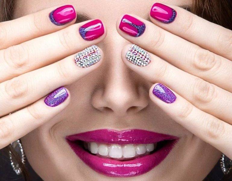 Вечерний маникюр с декором (лепка, стразы, блестки)