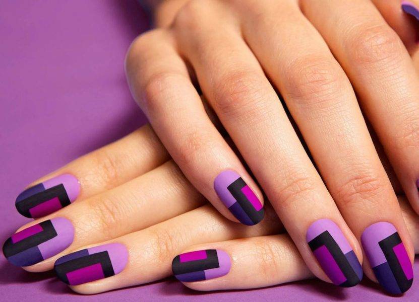 Сиреневый в своем исполнении на короткую длину схож с розовыми тонами. Задача та же, выполнение с различными дизайнами то же, но отличие лишь в том, что это будет не надоедливый розовый, а редкий сиреневый оттенок.