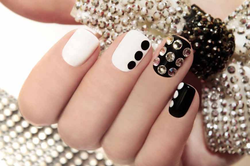 Многие люди не считают черный лак для ногтей праздничным выбором, и не зря! Стоит добавить к этому накладному дизайну серебряную или золотую фольгу или сделать черно-белый маникюр, как пальцы станут стильным, праздничным элементом образа. Вы можете быть в центре внимания не только во время праздников, но и в повседневной жизни после них.
