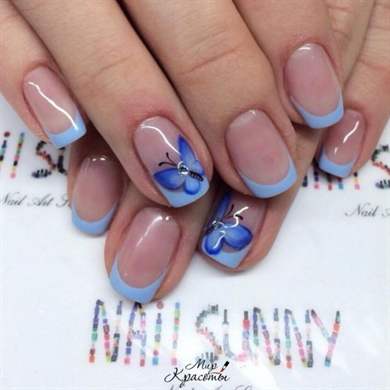 Также вы можете сочетать этот дизайн с блестками или стразами. В моду возвращается леопардовый френч, он подойдет более смелым и ярким девушкам. Более утонченно и нежно будет смотреться союз с цветочными мотивами и бабочками. Также можно попробовать поэкспериментировать с формой — в 2022 году актуален френч на миндальных и острых ногтях.