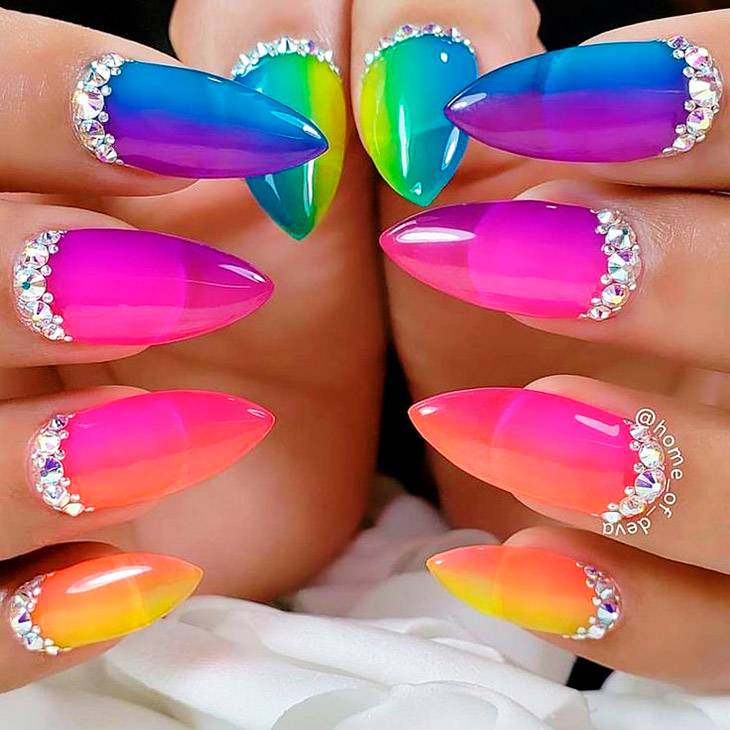 Креативный радужный маникюр просто ворвался к нам этим летом. Праздничное летнее оформление поднимают настроение.