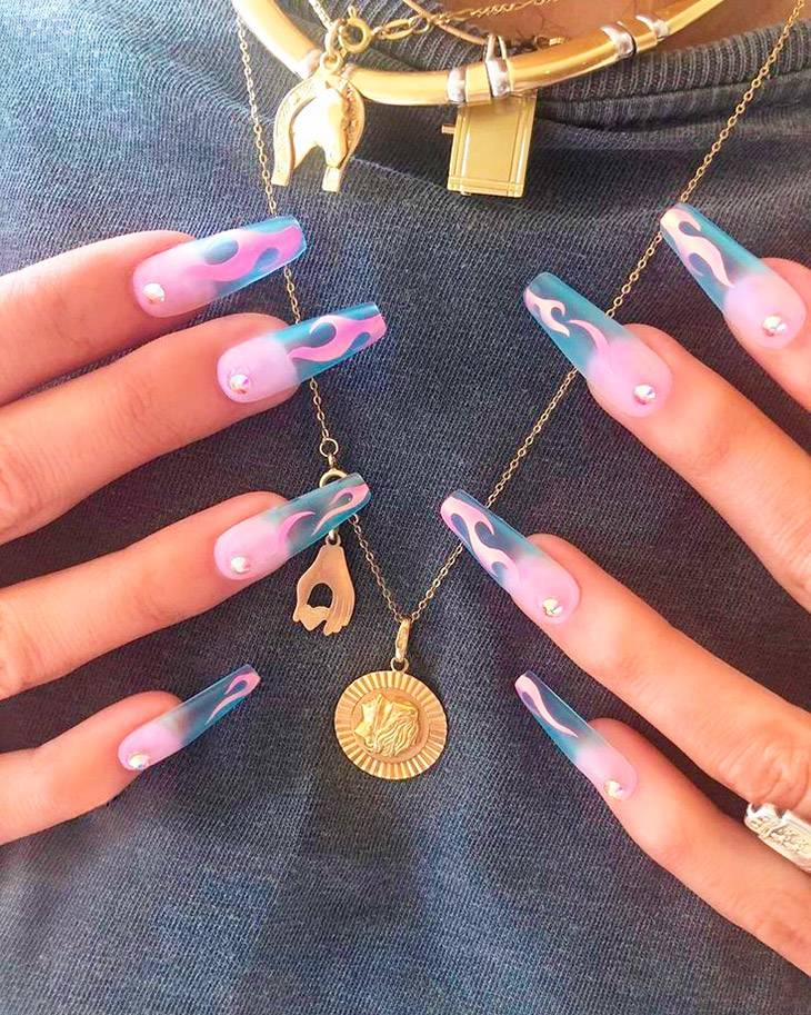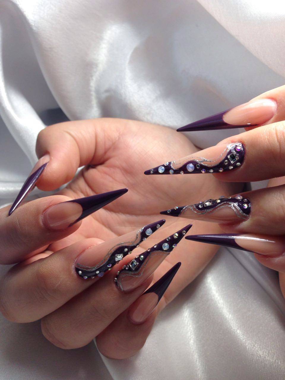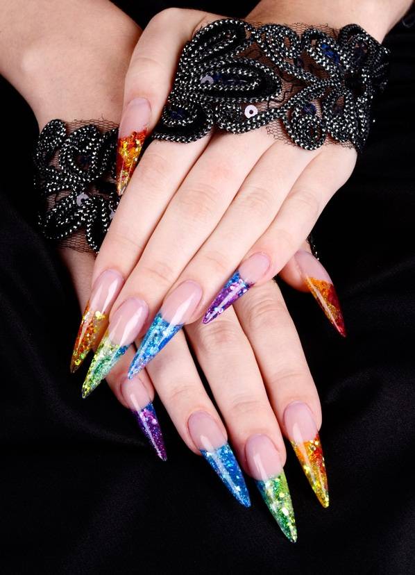 Декор просто создан для яркого образа, даже френч на длинных ногтях не будет скучным и незаметным.