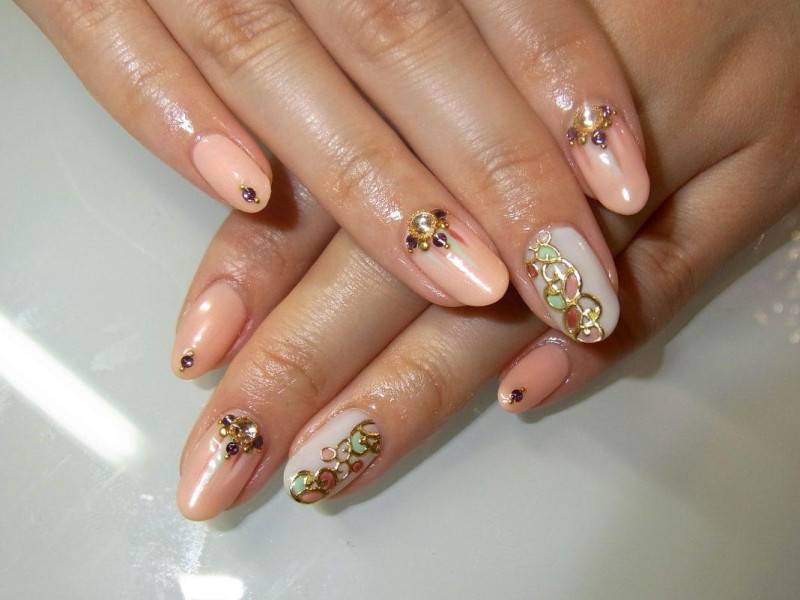 В тренде последние несколько лет остаются нюдовые варианты оттенков. Именно они считаются лучшими для создания маникюра для выпускного. К самым популярным оттенкам можно отнести розовый, персиковый, бежевый, светло-голубой и так далее.