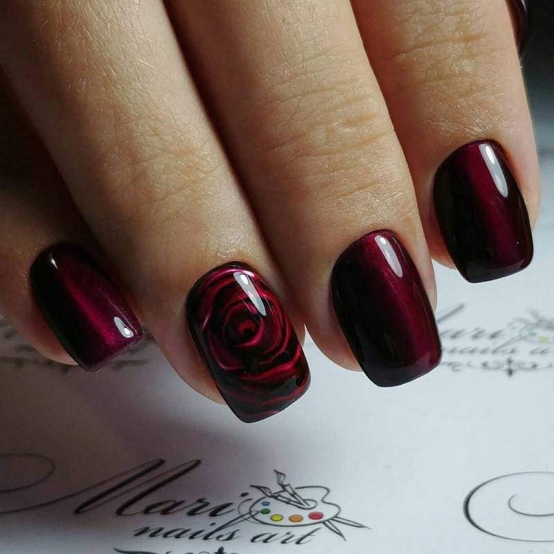 - Красный. Лучше всего выбрать глубокий винный оттенок или же, например, цвет вишня. От алых ярких красных ногтей лучше всего отказаться.
