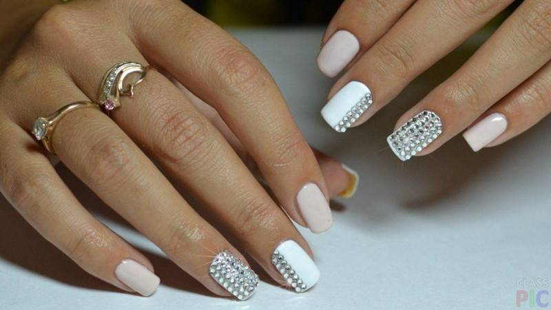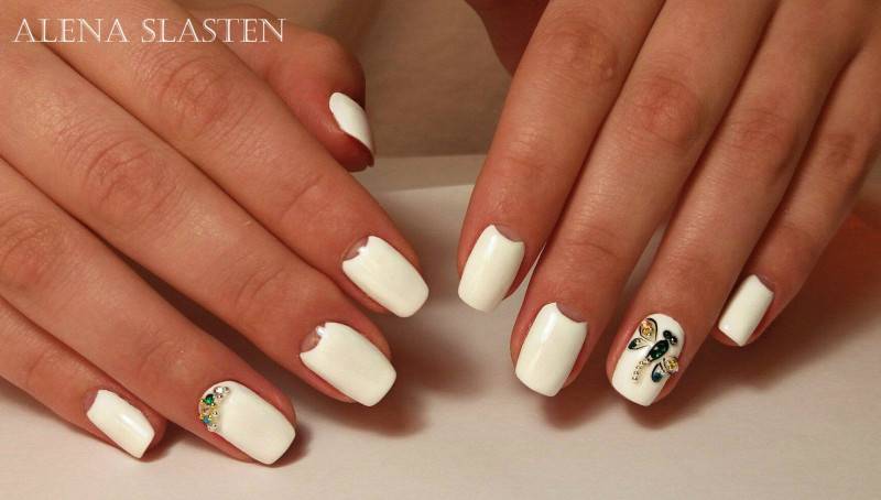 Белый маникюр отлично сочетается с нарядами белого, черного, красного и розового цвета. Универсальны сочетания белого фона и рисунков серебром, золотом. В остальном можно сделать небольшой рисунок на одном двух ногтях цветом, который в наряде является основным. Белый маникюр с дизайном светлых тонов добавляет образу легкости и воздушности, контрастные рисунки будут смотреться смело и дерзко. Бежевые оттенки в маникюре – это самые универсальные цвета, которые можно сочетать со всеми цветами и оттенками в наряде