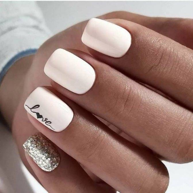 Белый маникюр отлично сочетается с нарядами белого, черного, красного и розового цвета. Универсальны сочетания белого фона и рисунков серебром, золотом. В остальном можно сделать небольшой рисунок на одном двух ногтях цветом, который в наряде является основным. Белый маникюр с дизайном светлых тонов добавляет образу легкости и воздушности, контрастные рисунки будут смотреться смело и дерзко. Бежевые оттенки в маникюре – это самые универсальные цвета, которые можно сочетать со всеми цветами и оттенками в наряде