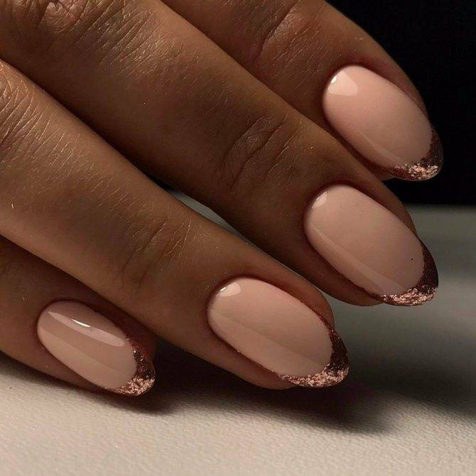 - короткие ногти с овальным или миндалевидным округлением кончика;
