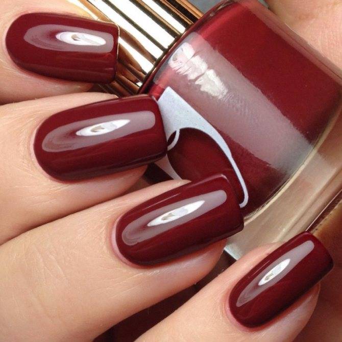 - Красный. Лучше всего выбрать глубокий винный оттенок или же, например, цвет вишня. От алых ярких красных ногтей лучше всего отказаться.