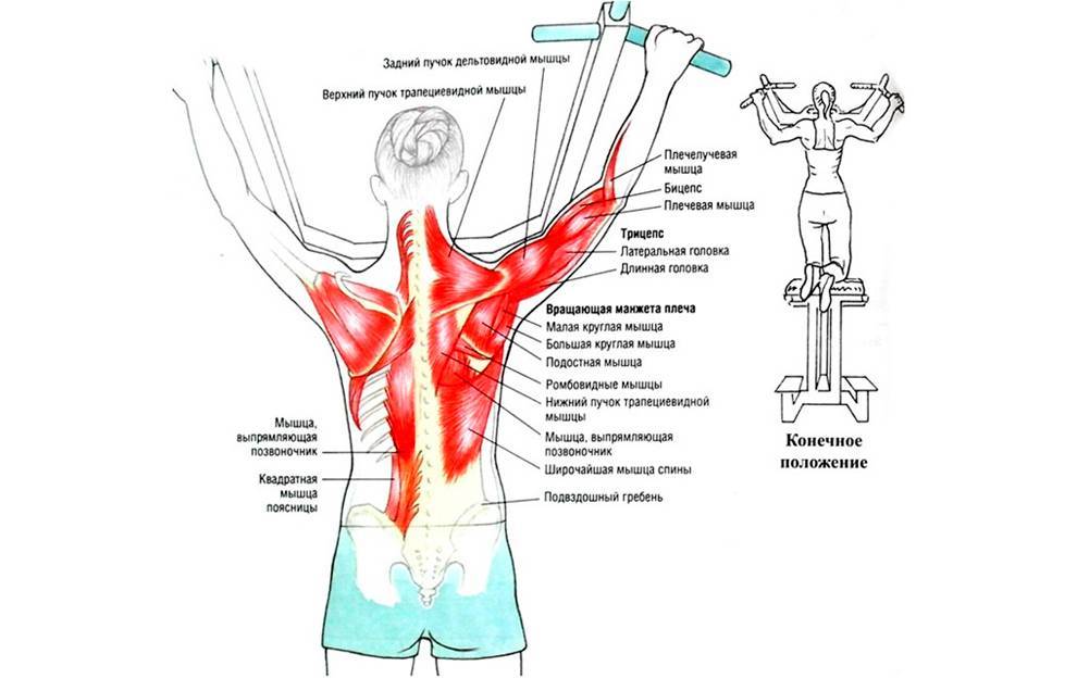 Отлично влияет на осанку и широчайшие мышцы.