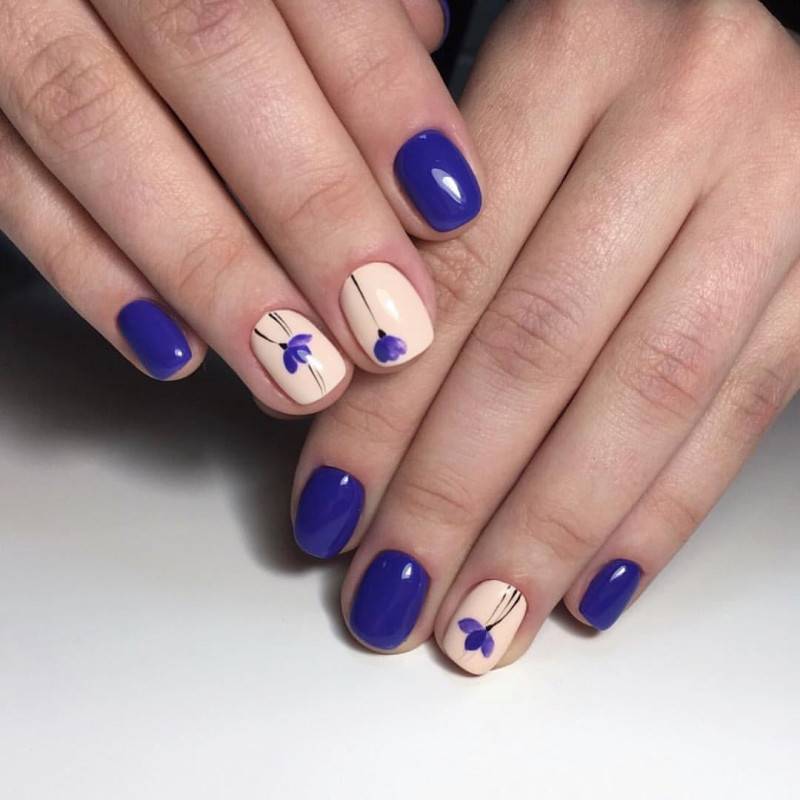Цветочный рисунок всегда будет популярным, независимо от времени года и модных трендов. Все потому, что он может выглядеть совершенно по-разному, в зависимости от цветового решения, вида цветов, а также техники нанесения дизайна. Поэтому всегда можно подобрать вариант, который подходит именно вам. В случае со школьным маникюром есть определенные ограничения, которых стоит придерживаться. Это значит, что основное покрытие должно быть нейтральным. К примеру, бежевым, белым, молочным, светло-розовым или прозрачным. Непосредственно цветочный рисунок отлично смотрится в пастельной цветовой гамме. Чтобы добиться мягкости дизайна можно использовать водную технику. В таком случае рисунок получается легким, еле заметным.