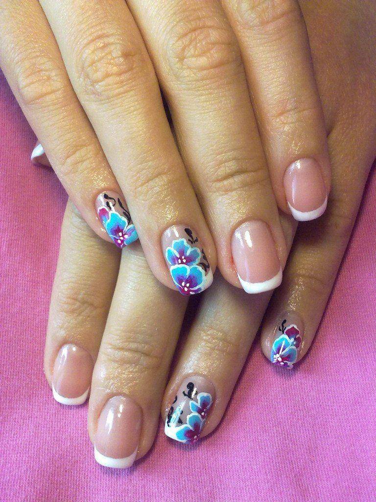 Красивый школьный маникюр с цветами