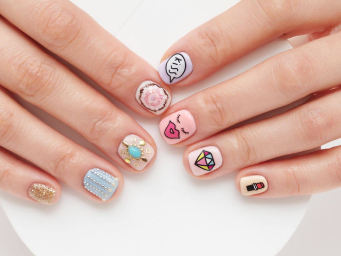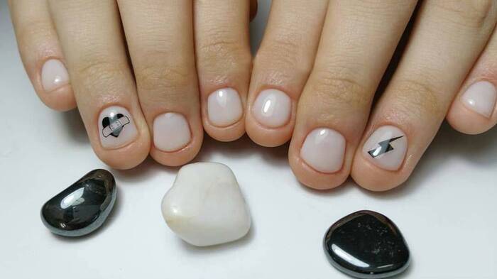 - Старайтесь избегать сложных рисунков и всевозможных декоративных нейл-покрытий и материалов вроде фимо, камней, страз.