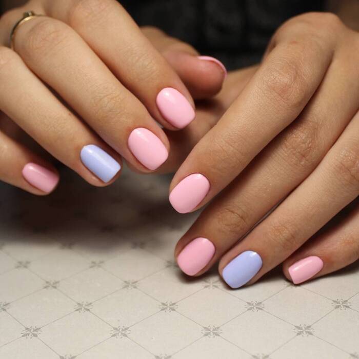 - Если в вашей школе не существует строгого дресс-кода, можно воспользоваться сочетанием более темных и светлых оттенков, накрасив каждый ноготок разным цветом как на фото ниже.