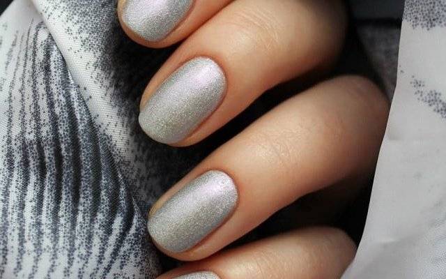 - Максимум, что можно использовать- серебристый или золотистый глиттер, но им не стоит покрывать все ноготки, а можно лишь сделать ненавязчивый акцент, покрыв им один из пальчиков.