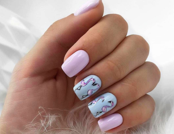 Длинным он добавляет насыщенность цвету, тем самым выгодно подчеркивая их длину, привлекая внимание к форме. Вместе с классикой белых жемчужных цветов используются фисташковые, голубые, нежно-сиреневые