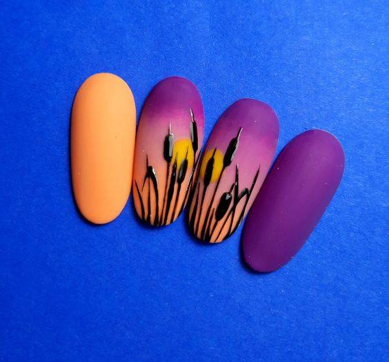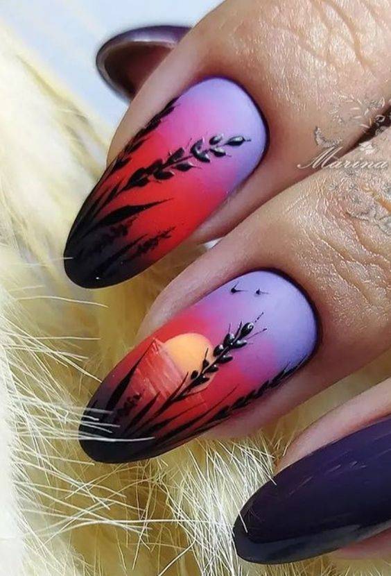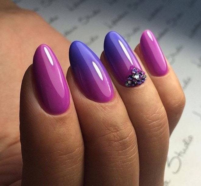 - градиентный маникюр с сочетанием контрастных оттенков;